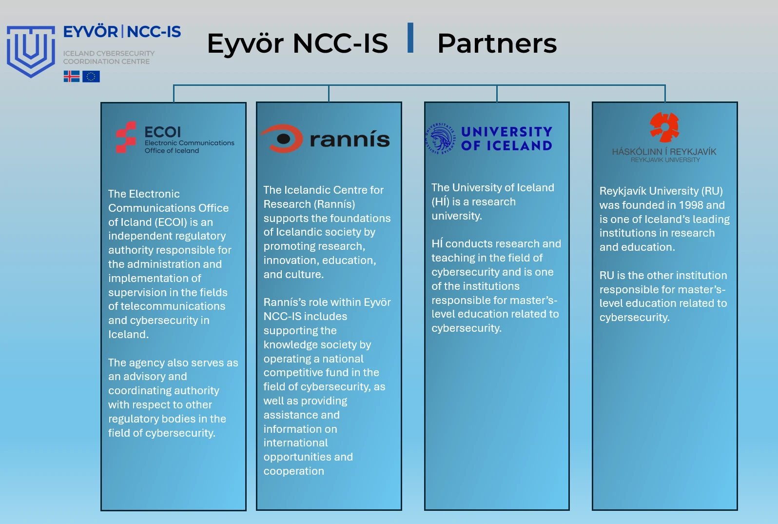 Through the joint efforts of its partners—and by combining administrative capacity with access to technology and expertise from both the business and research sectors—Eyvör can build and sustain an effective knowledge-based ecosystem for cybersecurity in Iceland.
